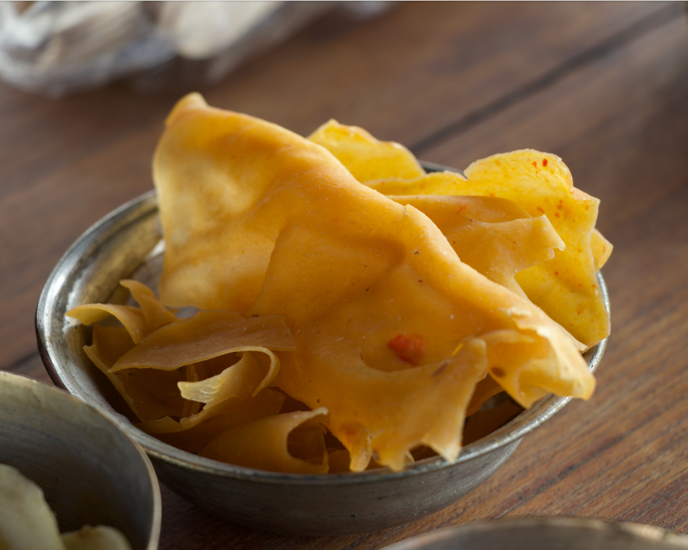 Winter and monsoon produce like tindsi (a variety of Indian round gourd that is native to western Rajasthan) are dried into fofaliya. Bhee (lotus stem), when available, is peeled, sliced, and sun-dried to be used later in stews and curries. Kachri, a wild, tangy melon native to Rajasthan, is sliced thin and left to dry, eventually used to make sabzi or add a sharp, sour note to meat dishes and accompaniments.